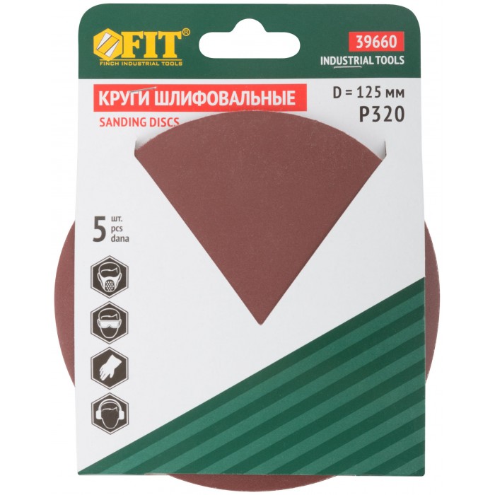 Круги шлифовальные сплошные (липучка), алюминий-оксидные, 125 мм, 5 шт. Р 320 (39660)