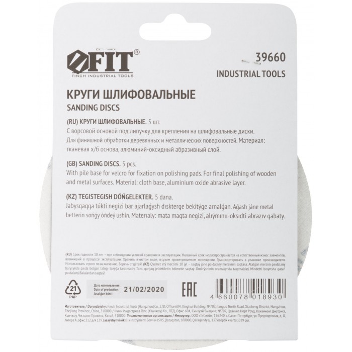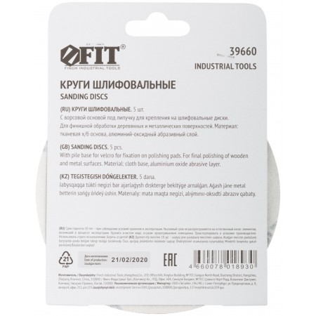D=125 мм. Цена за набор 5 шт. На тканевой основе с липучкой. Для обработки плоских поверхностей. Материал: абразивный слой из оксида алюминия. Упаковка: картонный конверт.