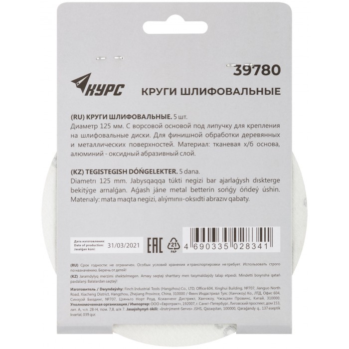 D=125 мм. Цена за набор 5 шт. На тканевой основе с липучкой. Для обработки плоских поверхностей. Материал: абразивный слой из оксида алюминия. Упаковка: картонный конверт.