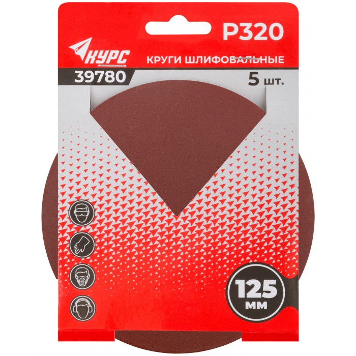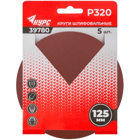 Круги шлифовальные сплошные (липучка), алюминий-оксидные, 125 мм, 5 шт. Р 320 (39780)
