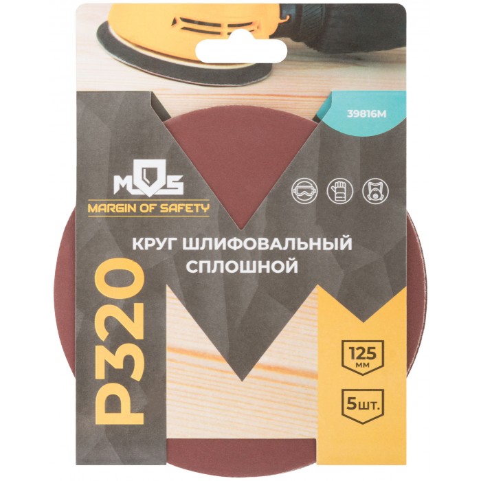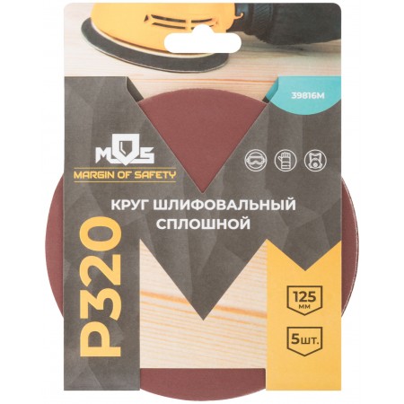 Круги шлифовальные сплошные (липучка), алюминий-оксидные, 125 мм, 5 шт. Р 320 (39816М)