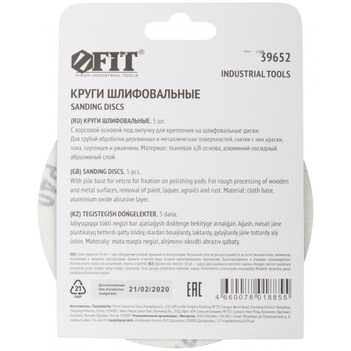 D=125 мм. Цена за набор 5 шт. На тканевой основе с липучкой. Для обработки плоских поверхностей. Материал: абразивный слой из оксида алюминия. Упаковка: картонный конверт.