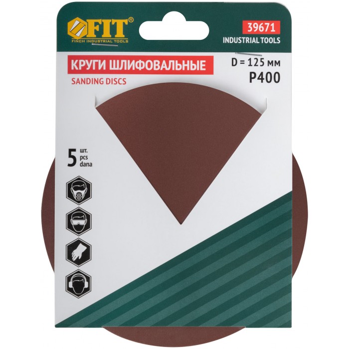 Круги шлифовальные сплошные (липучка), алюминий-оксидные, 125 мм, 5 шт. Р 400 (39671)