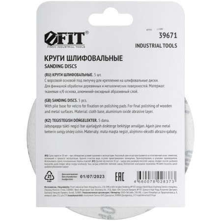 D=125 мм. Цена за набор 5 шт. На тканевой основе с липучкой. Для обработки плоских поверхностей. Материал: абразивный слой из оксида алюминия. Упаковка: картонный конверт.