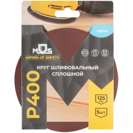 Круги шлифовальные сплошные (липучка), алюминий-оксидные, 125 мм, 5 шт. Р 400 (39817М)