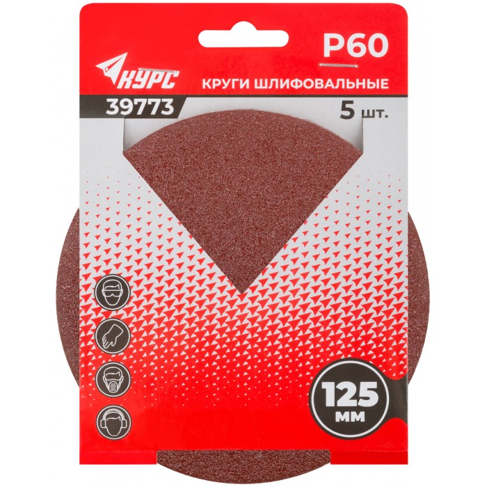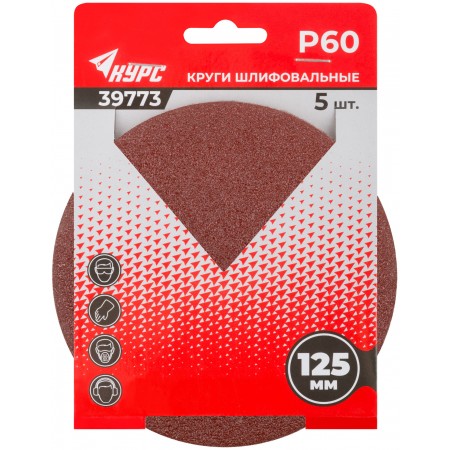 Круги шлифовальные сплошные (липучка), алюминий-оксидные, 125 мм, 5 шт. Р 60 (39773)