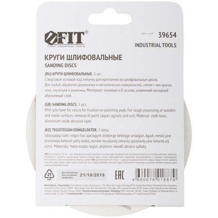 D=125 мм. Цена за набор 5 шт. На тканевой основе с липучкой. Для обработки плоских поверхностей. Материал: абразивный слой из оксида алюминия. Упаковка: картонный конверт.