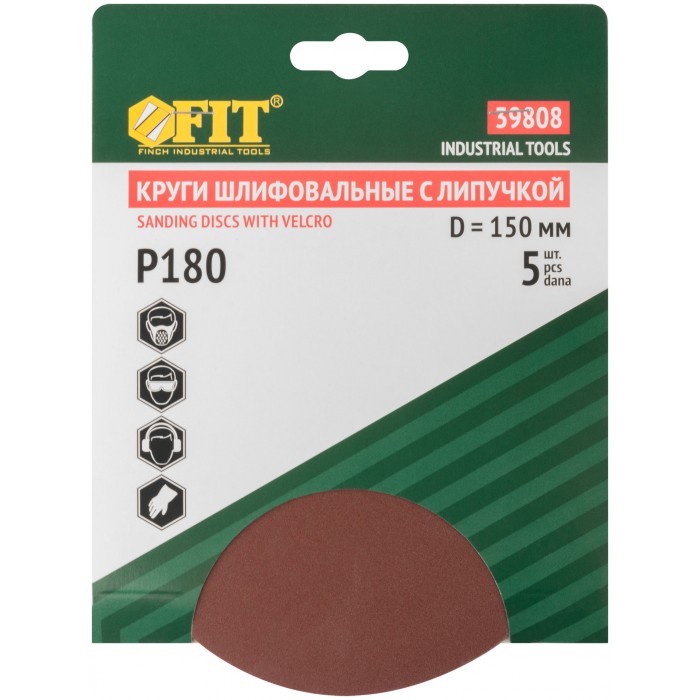 Круги шлифовальные сплошные (липучка), алюминий-оксидные, 150 мм, 5 шт. Р 180 (39808)