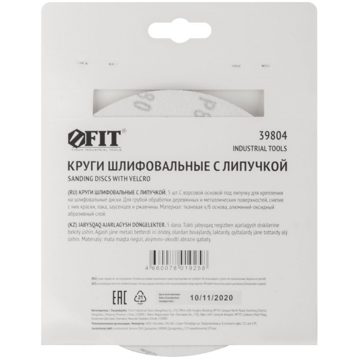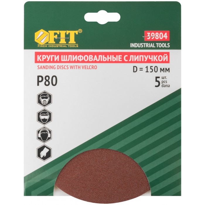 Круги шлифовальные сплошные (липучка), алюминий-оксидные, 150 мм, 5 шт. Р 80 (39804)
