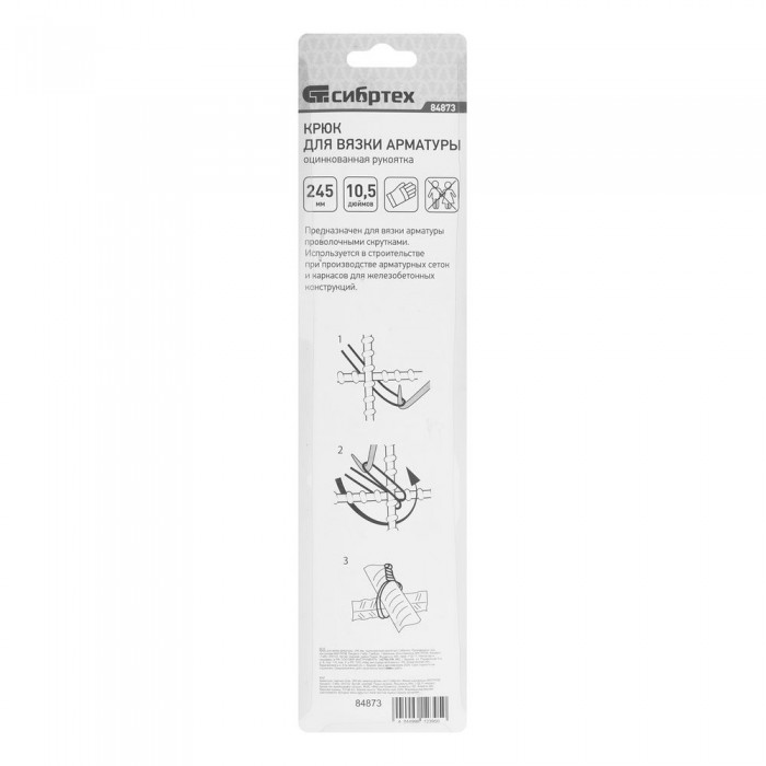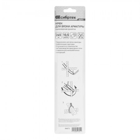 Крюк для вязки арматуры, 245 мм, оцинкованная рукоятка Сибртех (84873)