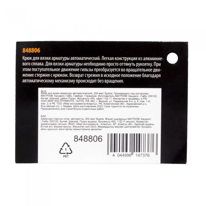 Крюк для вязки арматуры автоматический, 200 мм Sparta (848806)
