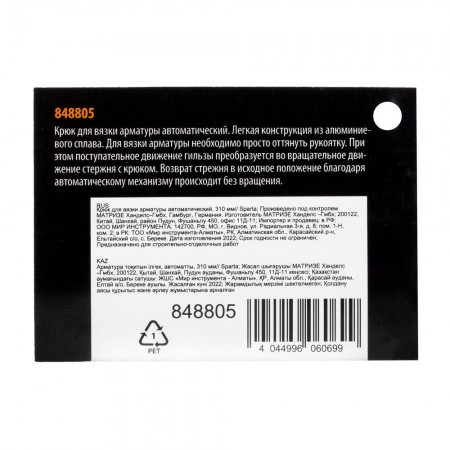 Крюк для вязки арматуры автоматический, 310 мм Sparta (848805)