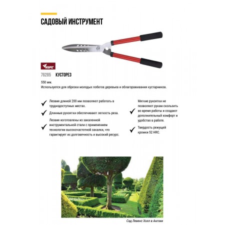 Кусторез, лезвия 190 мм, металлические ручки с ПВХ рукоятками 530 мм (76285)