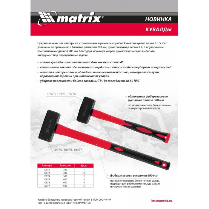 Кувалда 3 кг, фибергласовая обрезиненная рукоятка 600 мм Matrix