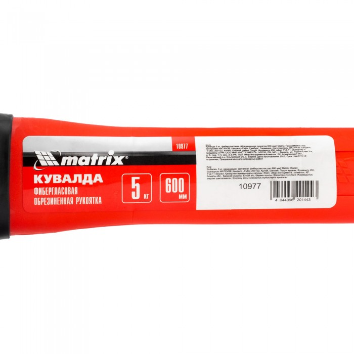 Кувалда 5 кг, фибергласовая обрезиненная рукоятка 600 мм Matrix
