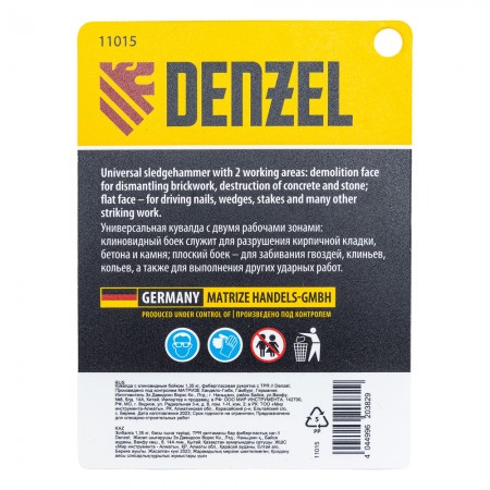 Кувалда с клиновидным бойком 1,35 кг, фибергласовая рукоятка c TPR Denzel