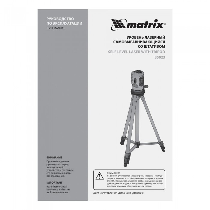 Лазерный уровень, 100 мм, штатив 1260 мм, самовыравнивающийся Matrix (35023)
