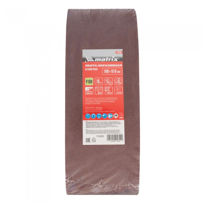 Лента абразивная бесконечная, P 100, 100 х 610 мм, 10 шт Matrix (74265)