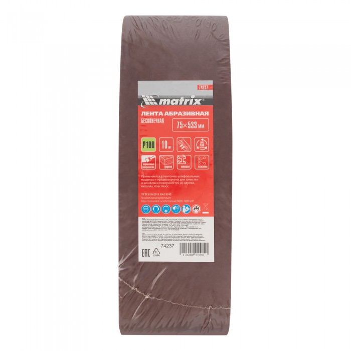 Лента абразивная бесконечная, P 100, 75 х 533 мм, 10 шт Matrix (74237)
