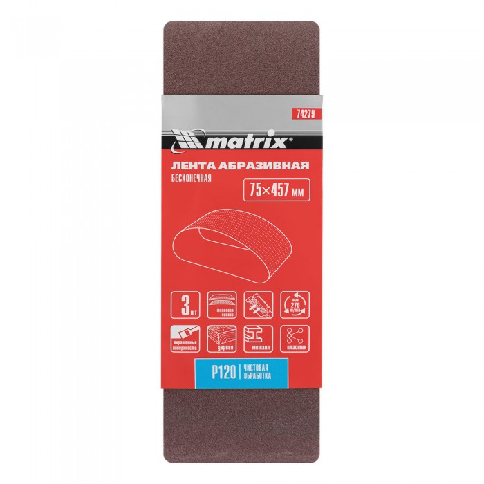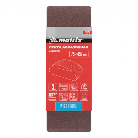 Лента абразивная бесконечная, P 120, 75 х 457 мм, 3 шт Matrix (74279)