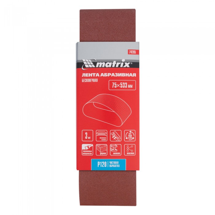Лента абразивная бесконечная, P 120, 75 х 533 мм, 3 шт Matrix (74285)