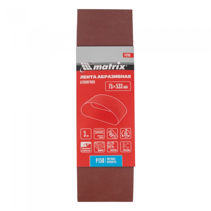 Лента абразивная бесконечная, P 150, 75 х 533 мм, 3 шт Matrix (74286)