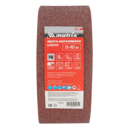 Лента абразивная бесконечная, P 40, 75 х 457 мм, 10 шт Matrix (74205)