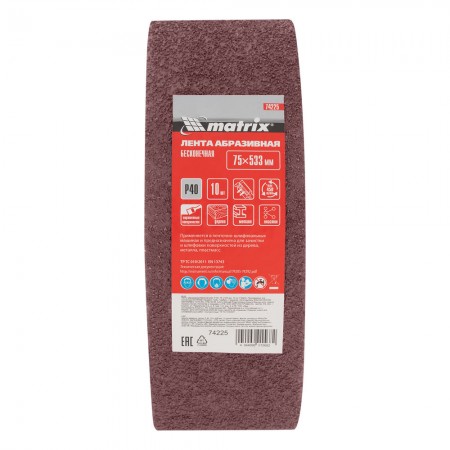 Лента абразивная бесконечная, P 40, 75 х 533 мм, 10 шт Matrix (74225)