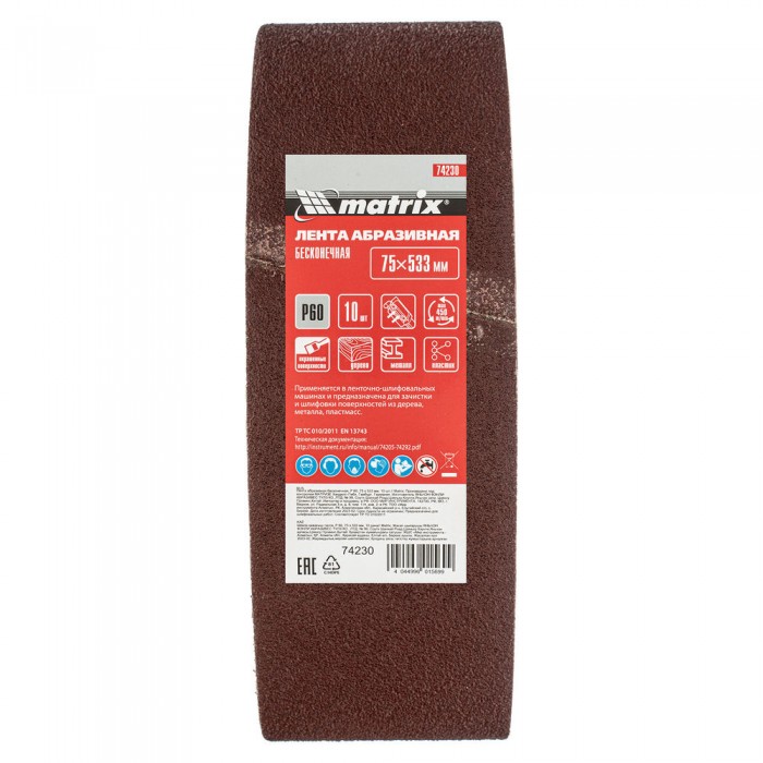 Лента абразивная бесконечная, P 60, 75 х 533 мм, 10 шт Matrix (74230)