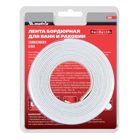 Лента бордюрная для ванн и раковин, 20 мм х 20 мм х 3.35 м Matrix (89091)