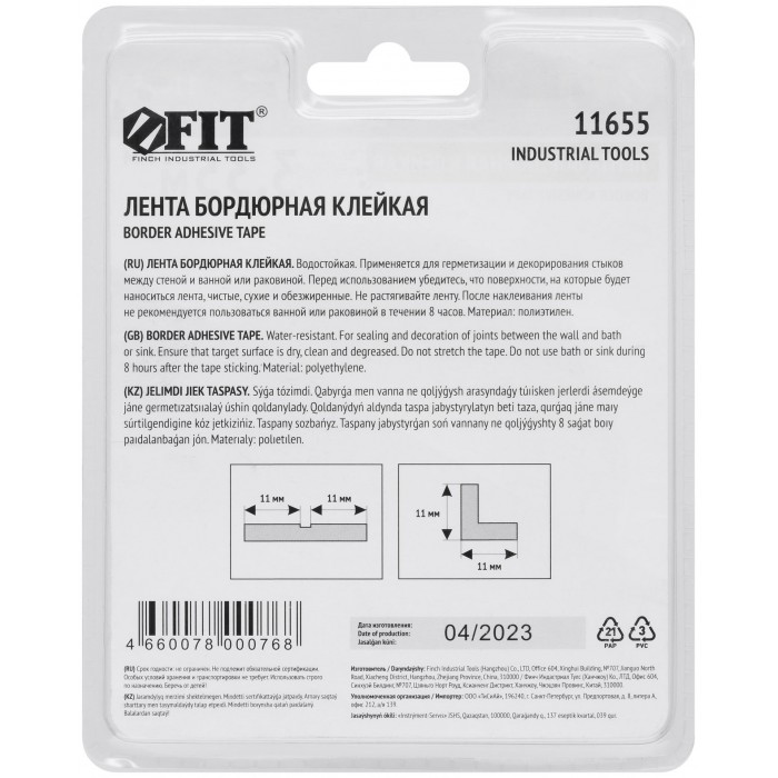 Cамоклеящаяся, водостойкая. Для герметизации и декорирования стыков между стеной и ванной или раковиной. Упаковка: блистер. Длина: 3,35 м.