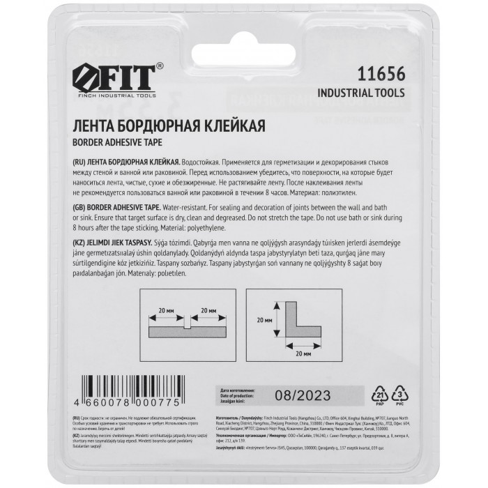 Cамоклеящаяся, водостойкая. Для герметизации и декорирования стыков между стеной и ванной или раковиной. Упаковка: блистер. Длина: 3,35 м.
