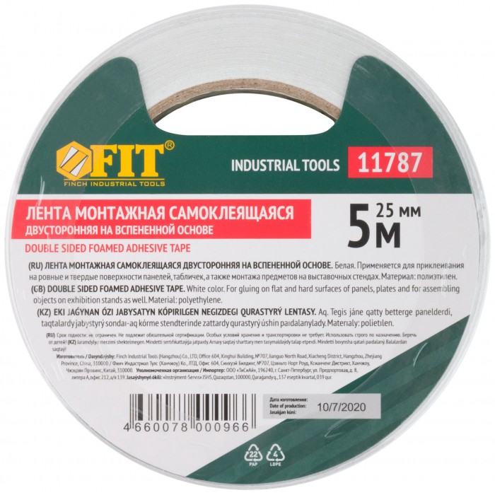 Монтажная. Вспененная основа. Применяется для приклеивания на ровные и твёрдые поверхности панелей, табличек и т.д., а также монтажа объектов на выставочных стендах.