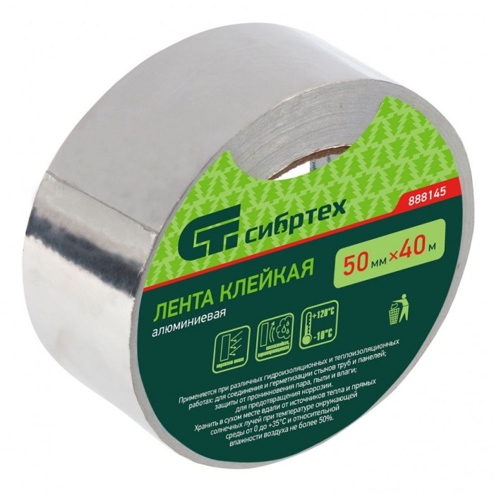 Лента клейкая алюминиевая, 50 мм х 40 м Сибртех (888145)