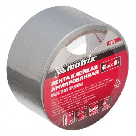 Лента клейкая армированная, влагостойкая, 48 мм х 10 м, серебристая Matrix (89070)