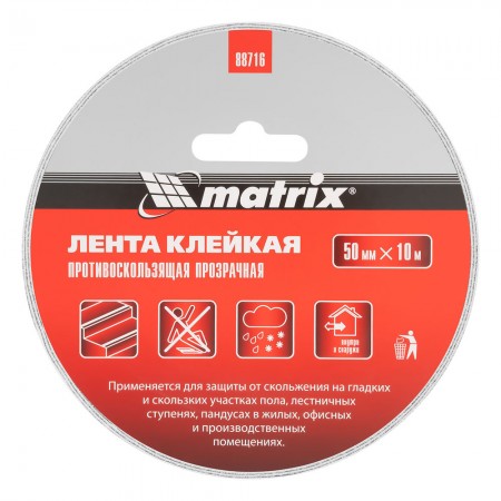 Лента клейкая противоскользящая, прозрачная 50мм x 10 м Matrix (88716)