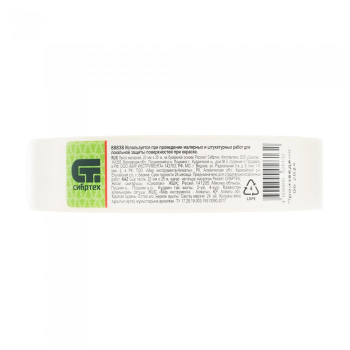 Лента малярная, 23 мм х 25 м, на бумажной основе Сибртех (88838)