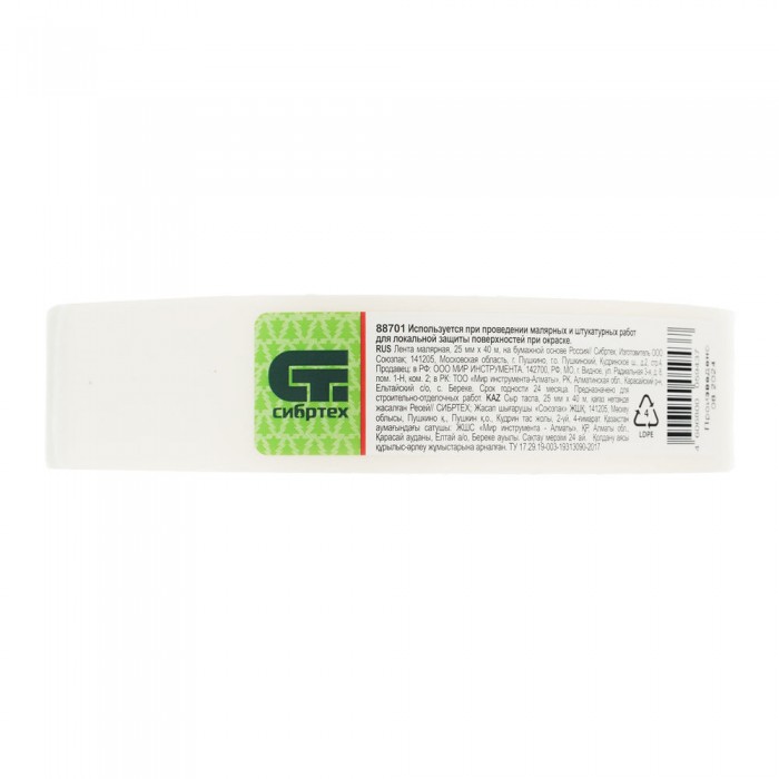 Лента малярная, 25 мм х 40 м, на бумажной основе Сибртех (88701)