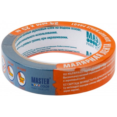 Лента малярная бумажная синяя, термостойкость до 100°C, УФ-стойкость до 14 дней, 24 мм х 25 м (30-6112)