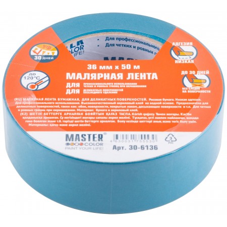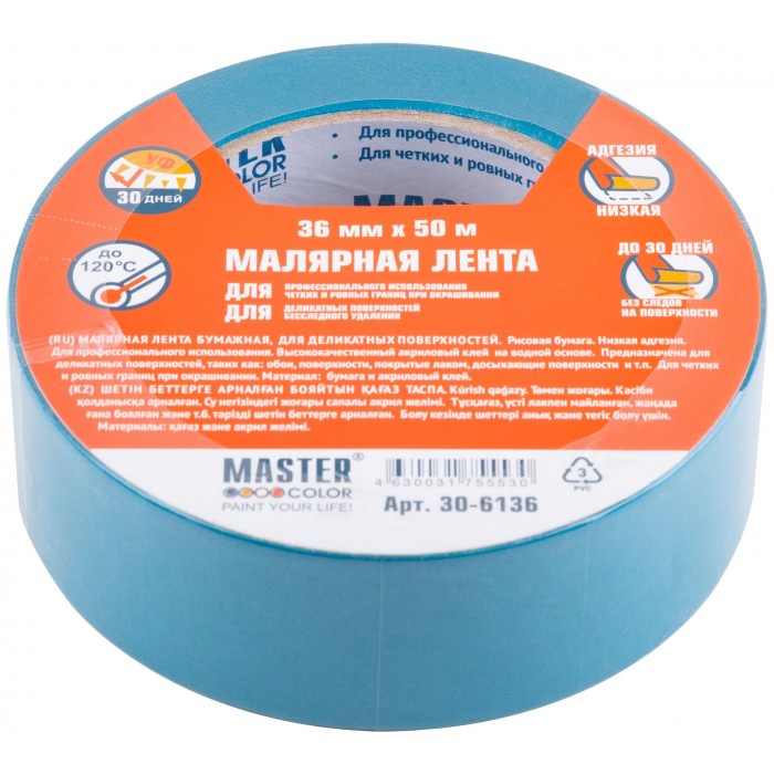 Малярная лента бумажная, сверхтонкая, для деликатных поверхностей, низкая адгезия. Термостойкость до 120°C. УФ стойкость до 30 дней. Высококачественный акриловый клей на водной основе. Предназначена для деликатных поверхностей, таких как: обои, поверхности, покрытые лаком, cвежеокраженные поверхности и т.п. Для четких и ровных границ при окрашивании.
