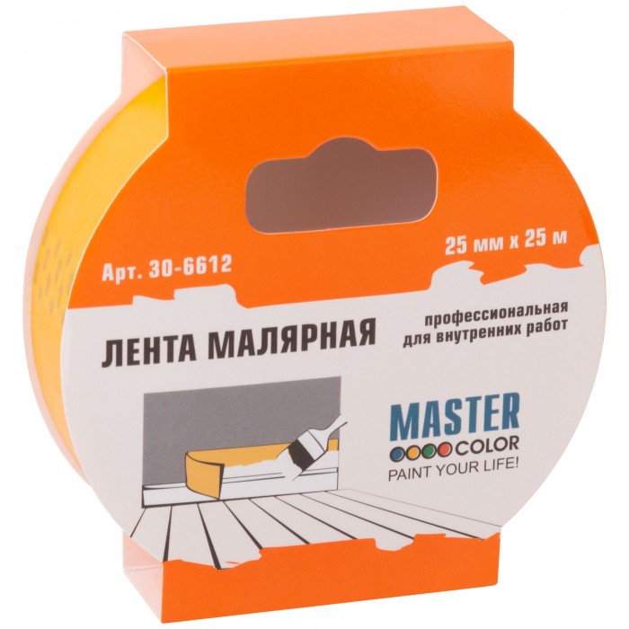Лента малярная желтая, для внутренних работ, 25 мм x 25 м (30-6612)