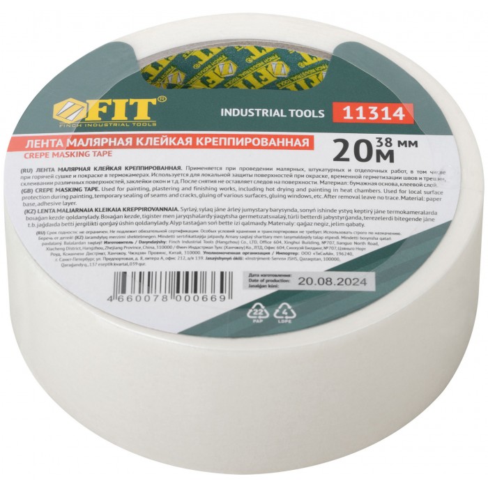 Лента малярная креппированная клейкая 38 мм х 20 м (11314)