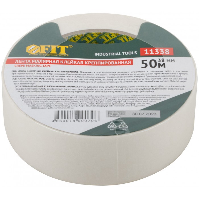 Лента малярная креппированная клейкая 38 мм х 50 м (11338)