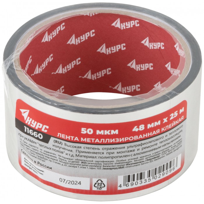 Лента металлизированная клейкая 48 мм х 25 м (11660)