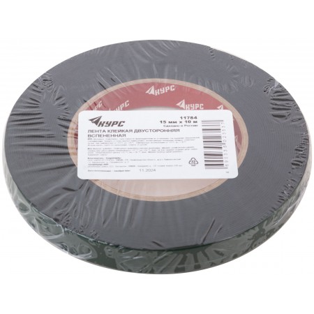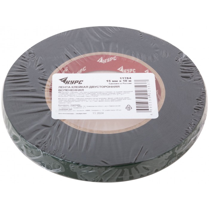 Лента монтажная клейкая на вспененной основе, черная 15 мм х 10 м (11784)