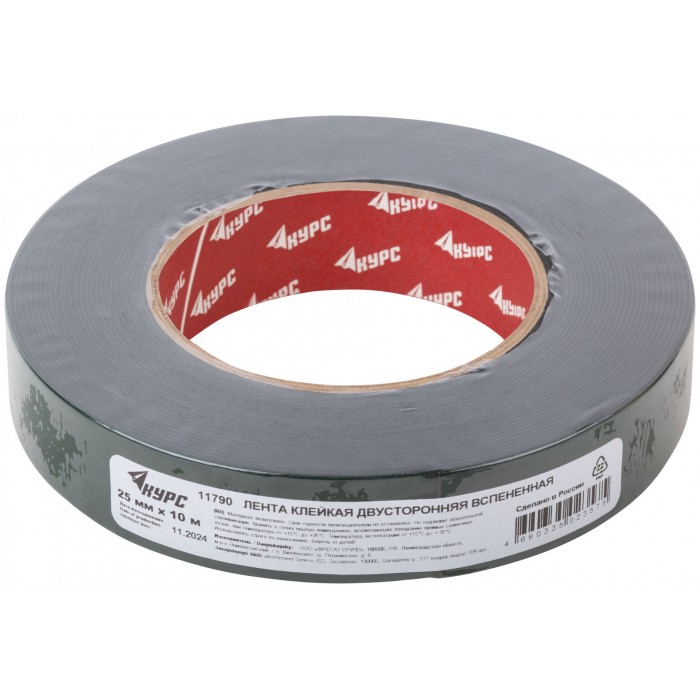 Лента монтажная клейкая на вспененной основе, черная 25 мм х 10 м (11790)