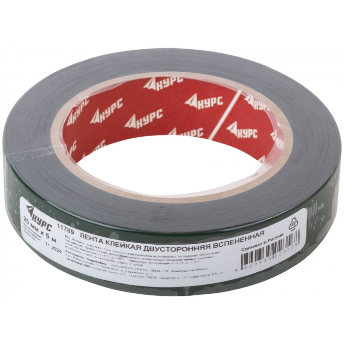 Лента монтажная клейкая на вспененной основе, черная 25 мм х 5 м (11789)