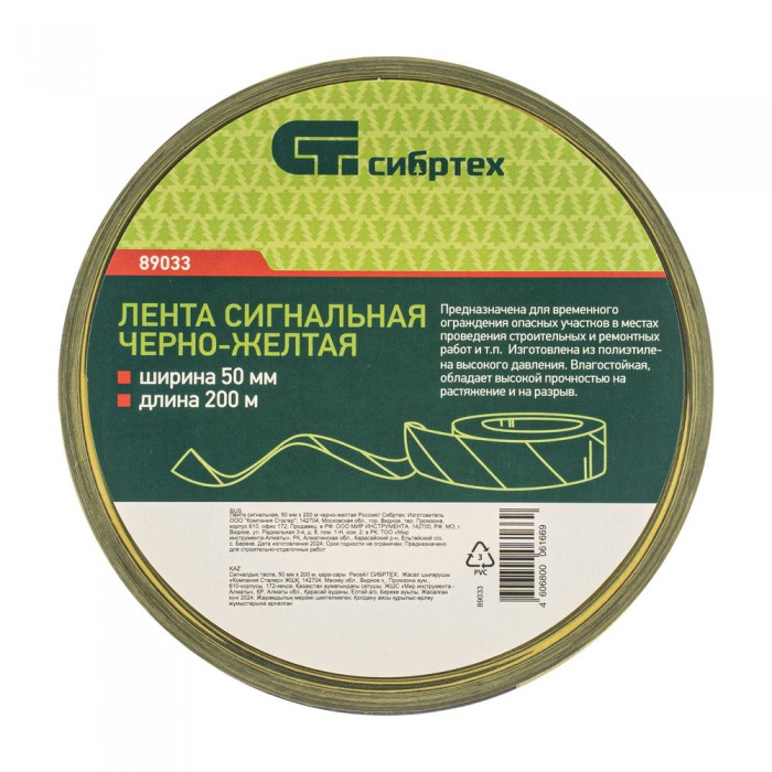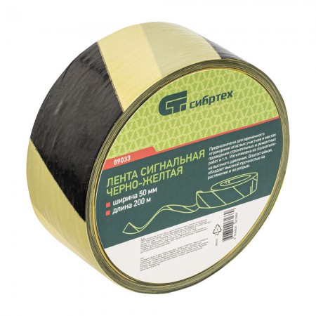 Лента сигнальная, 50 мм х 200 м, черно-желтая Сибртех (89033)