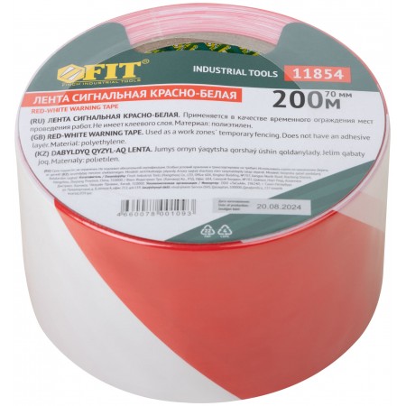 Лента сигнальная (красно-белая) 70 мм х 200 м (11854)
