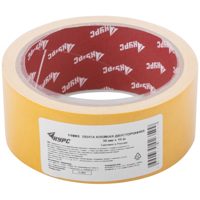 Лента-скотч клейкая двусторонняя 38 мм х 10 м (11803)